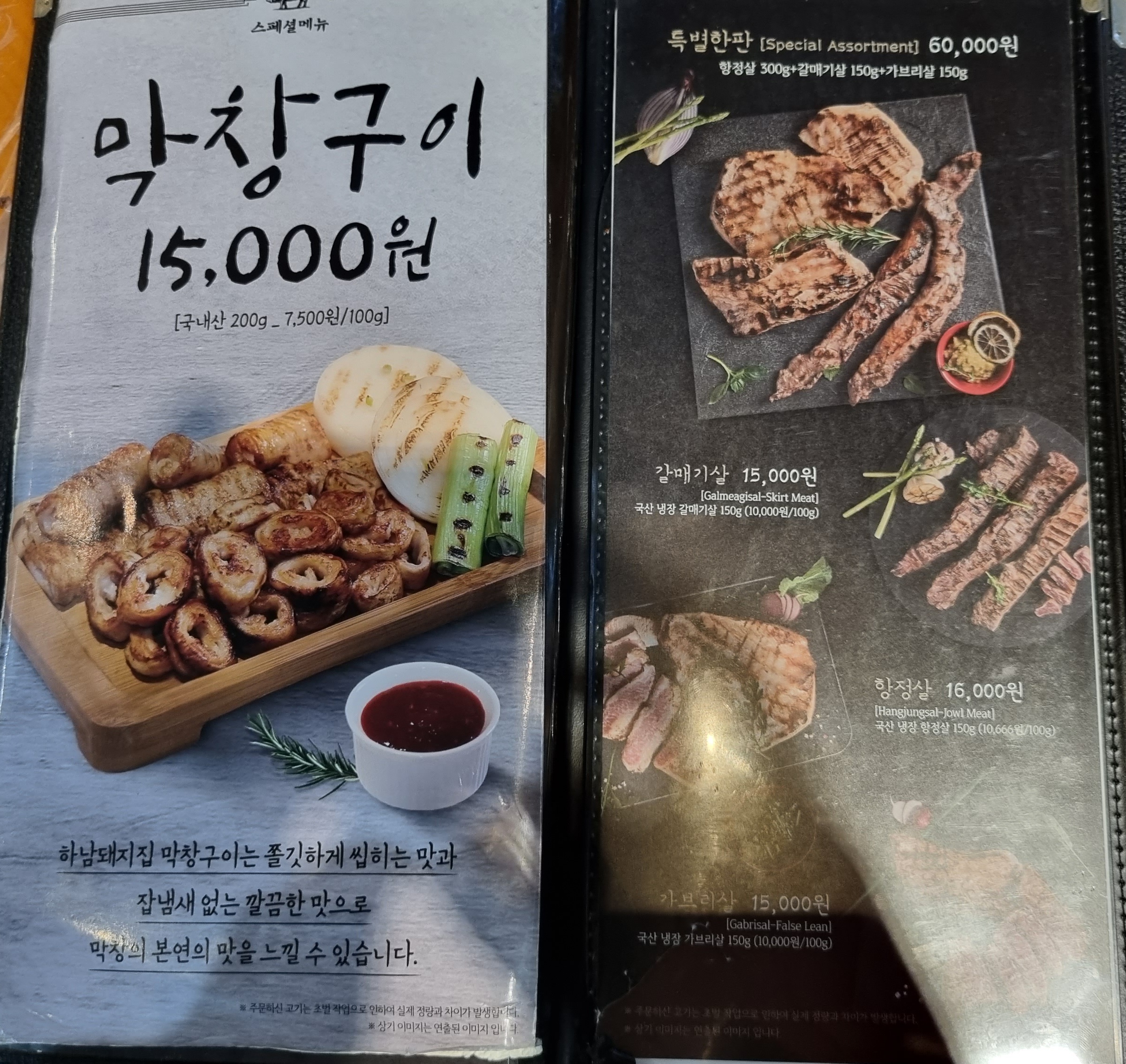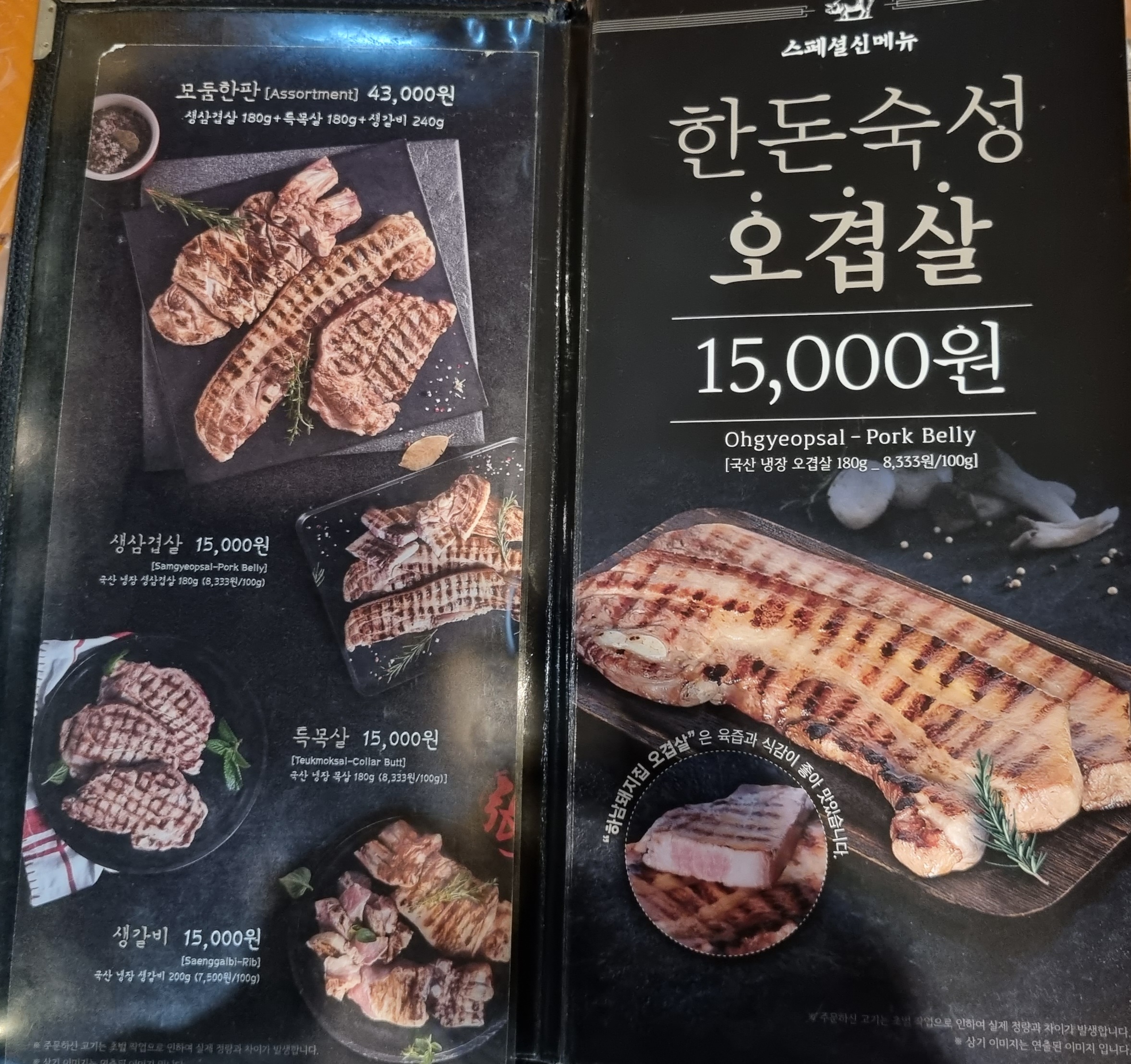 모둠 한판(생삼겹 180g, 특목살 180g, 생갈비 240g) 43000원