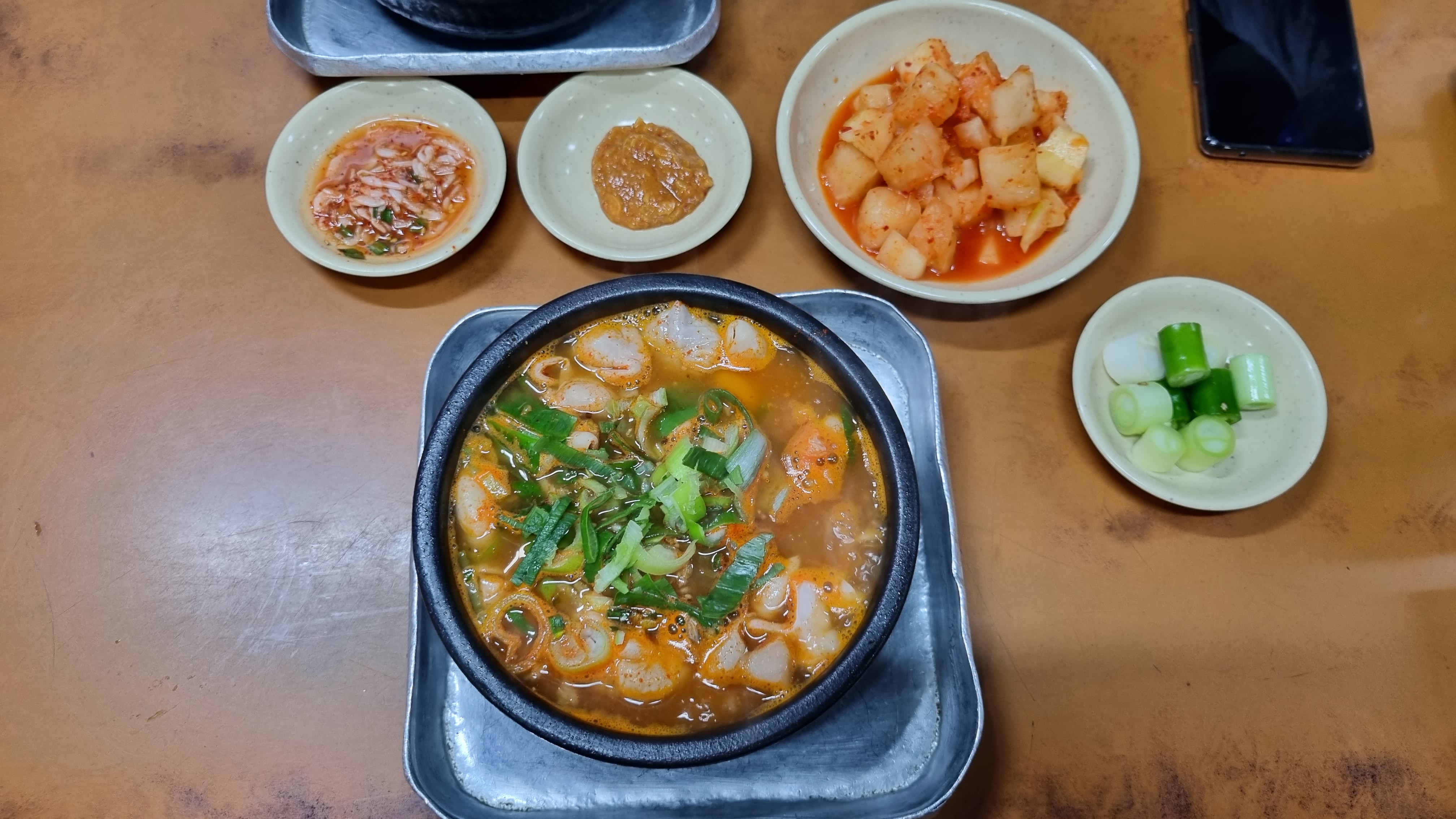 반찬은 깍두기와 파, 새우젓으로 단촐. 그러나 다 맛있고 잘 어울림.
