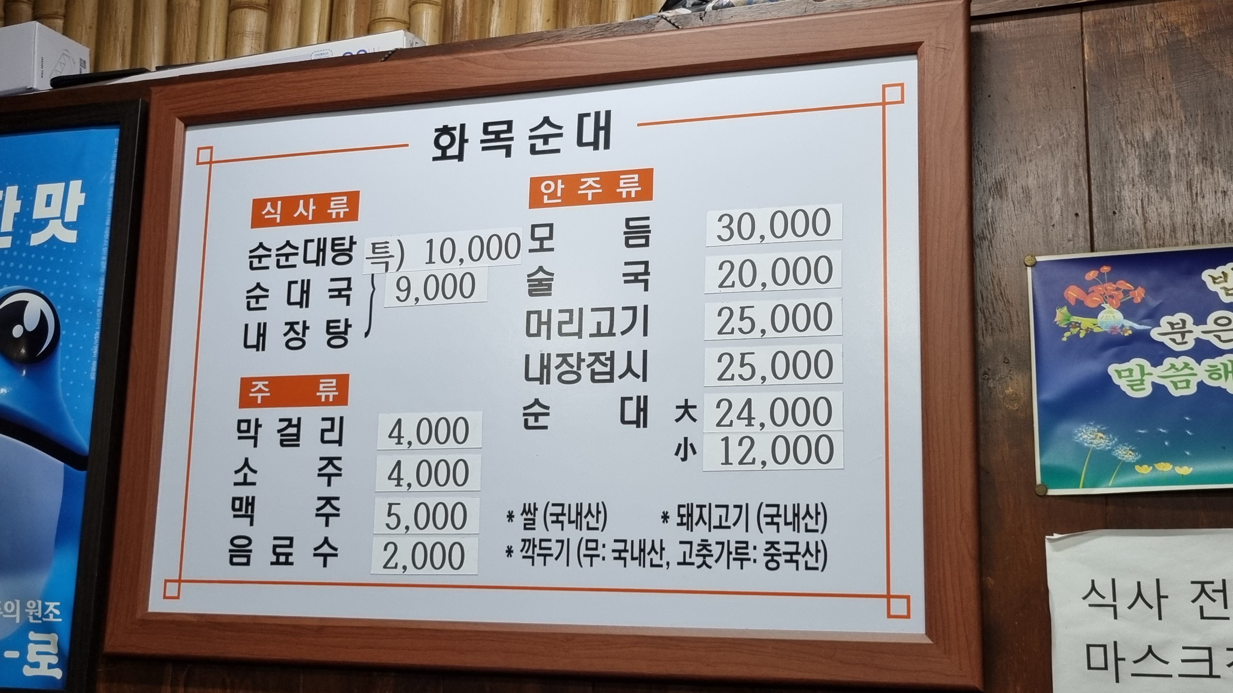 친구는 "순순대탕"을 주문함. 9000원.