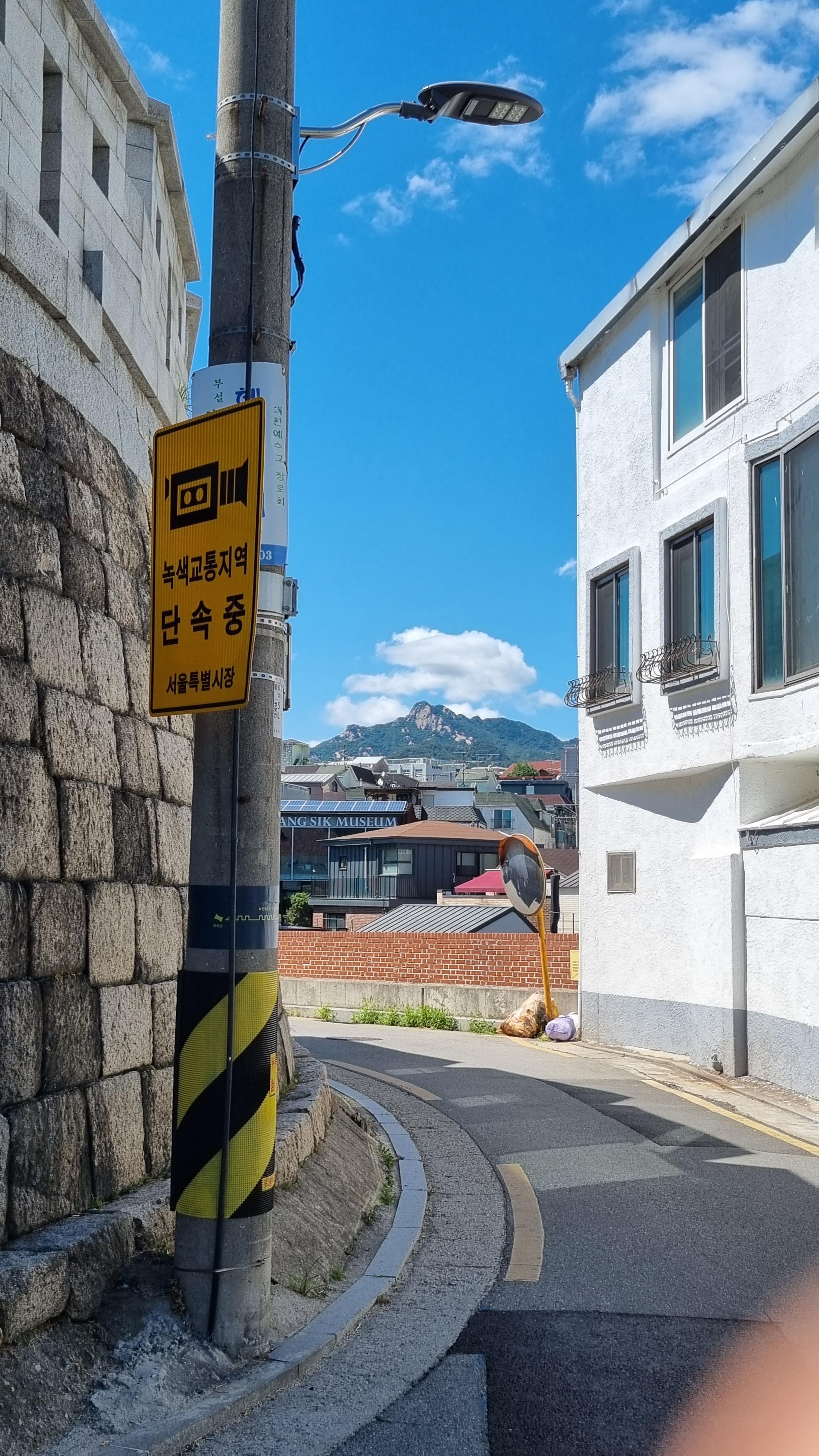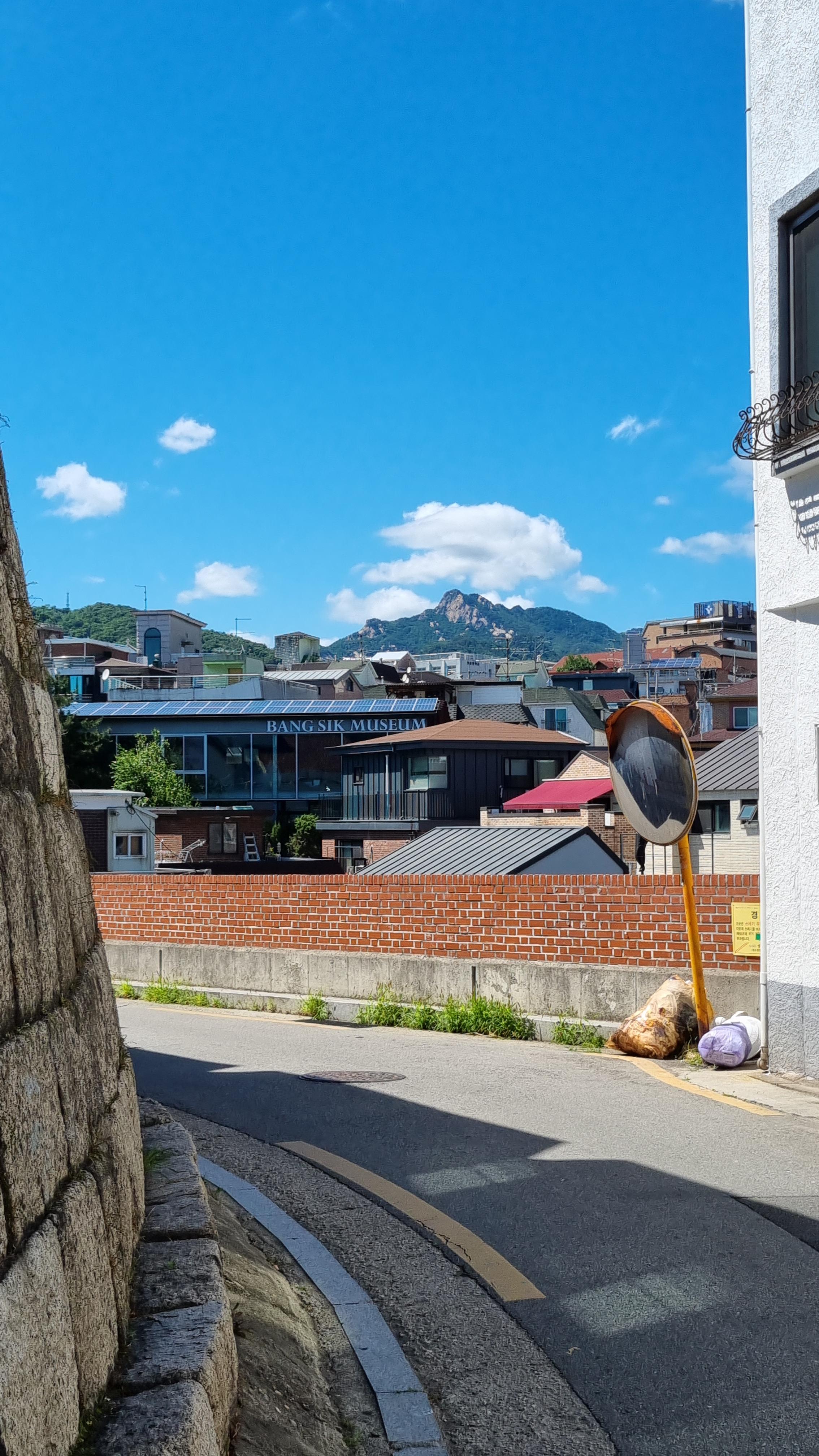 성벽과 곡선 길. 그리고 뒤쪽 북한산.