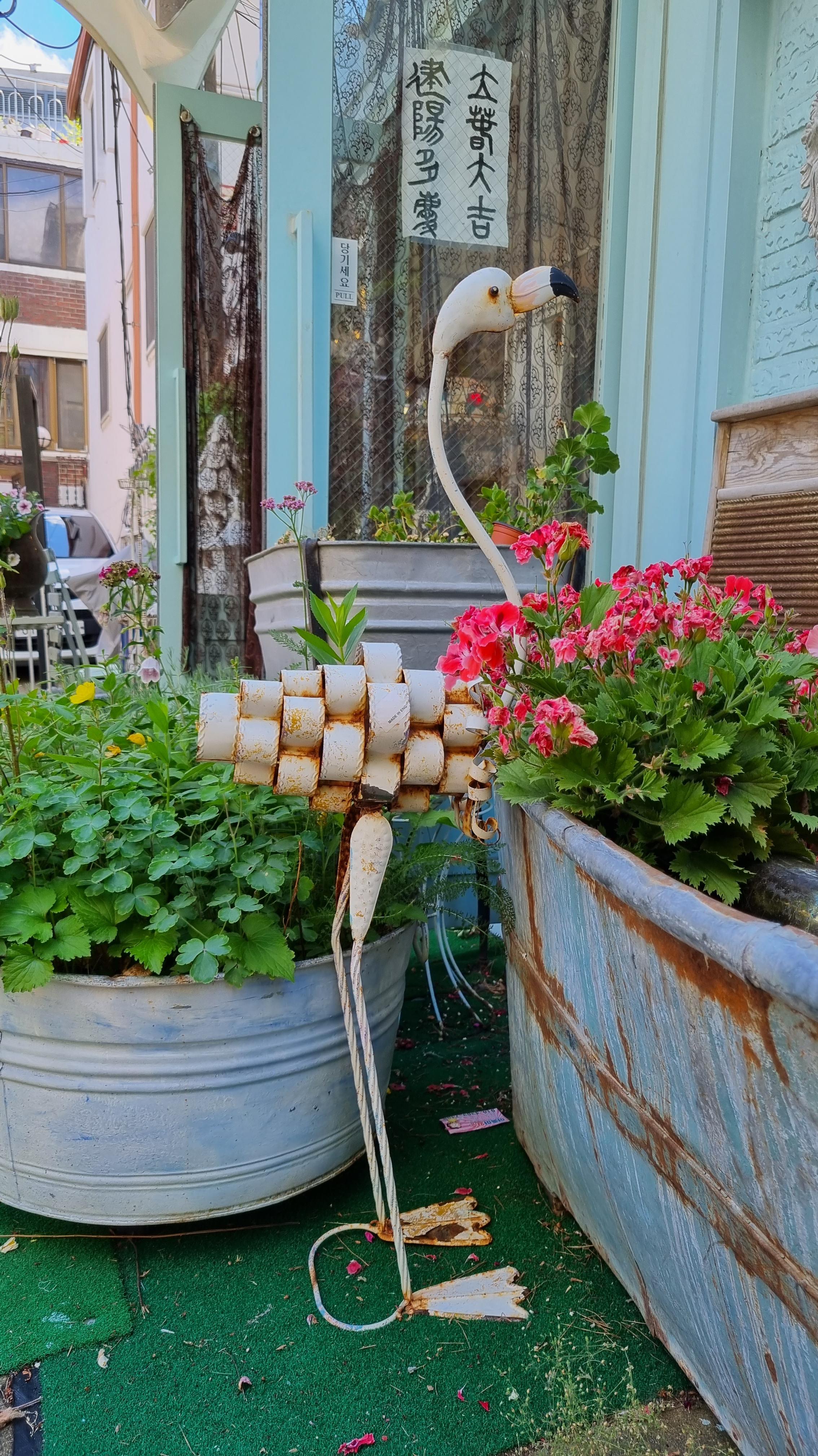 인테리어 소품 파는 집 앞 독특함으로 귀여운 홍학.