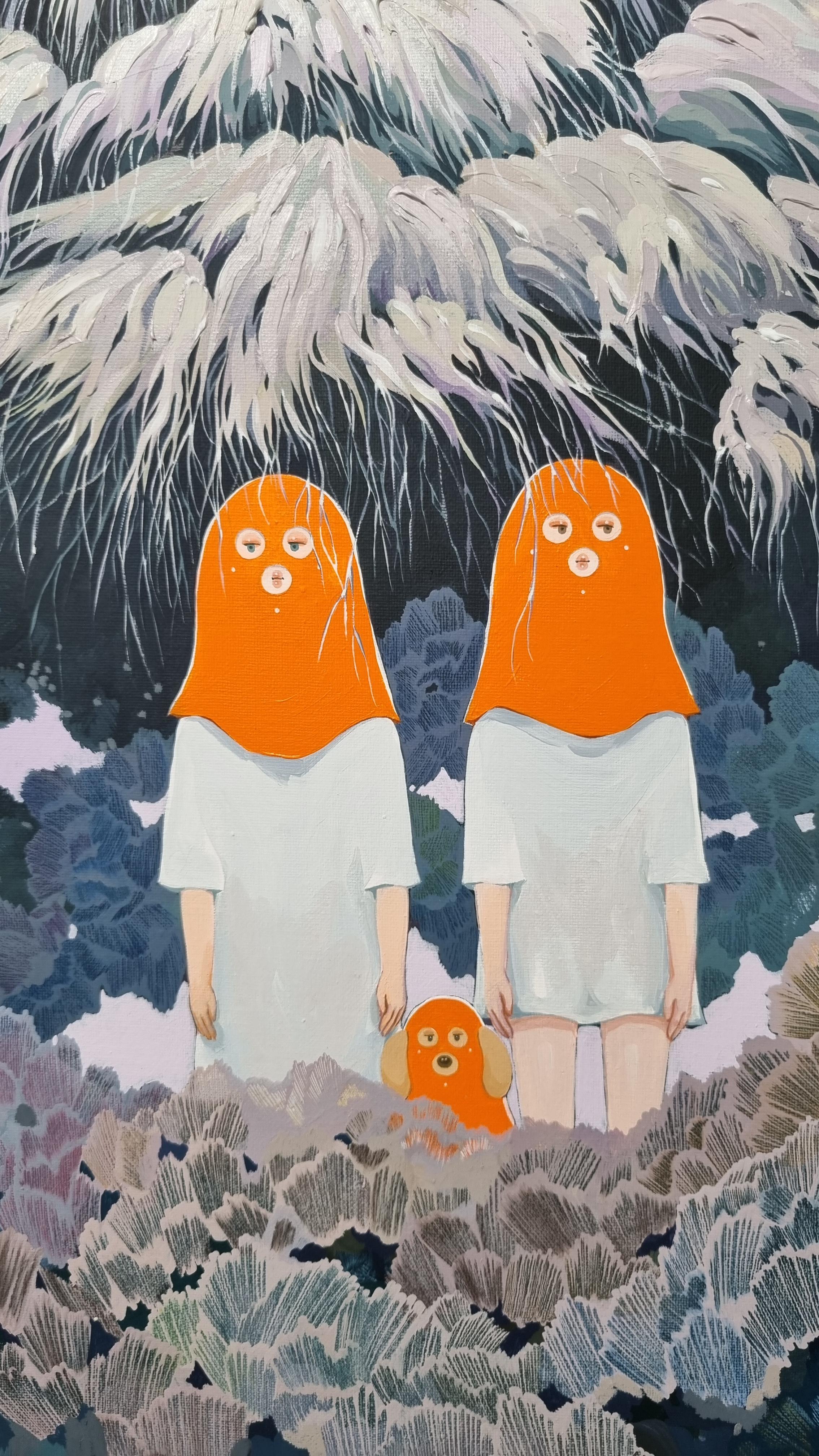 두건을 쓴 커플(?)과 강아지.