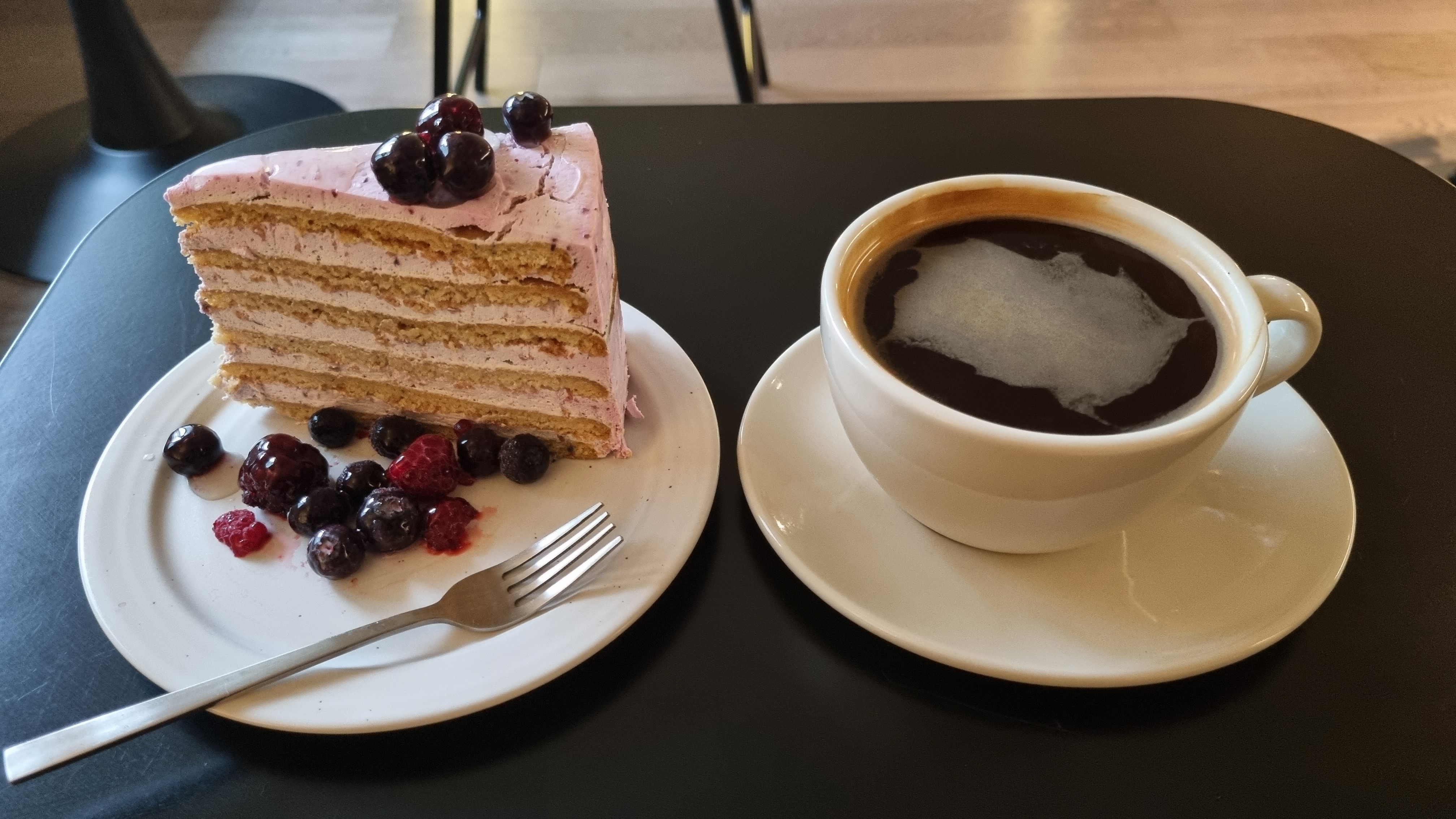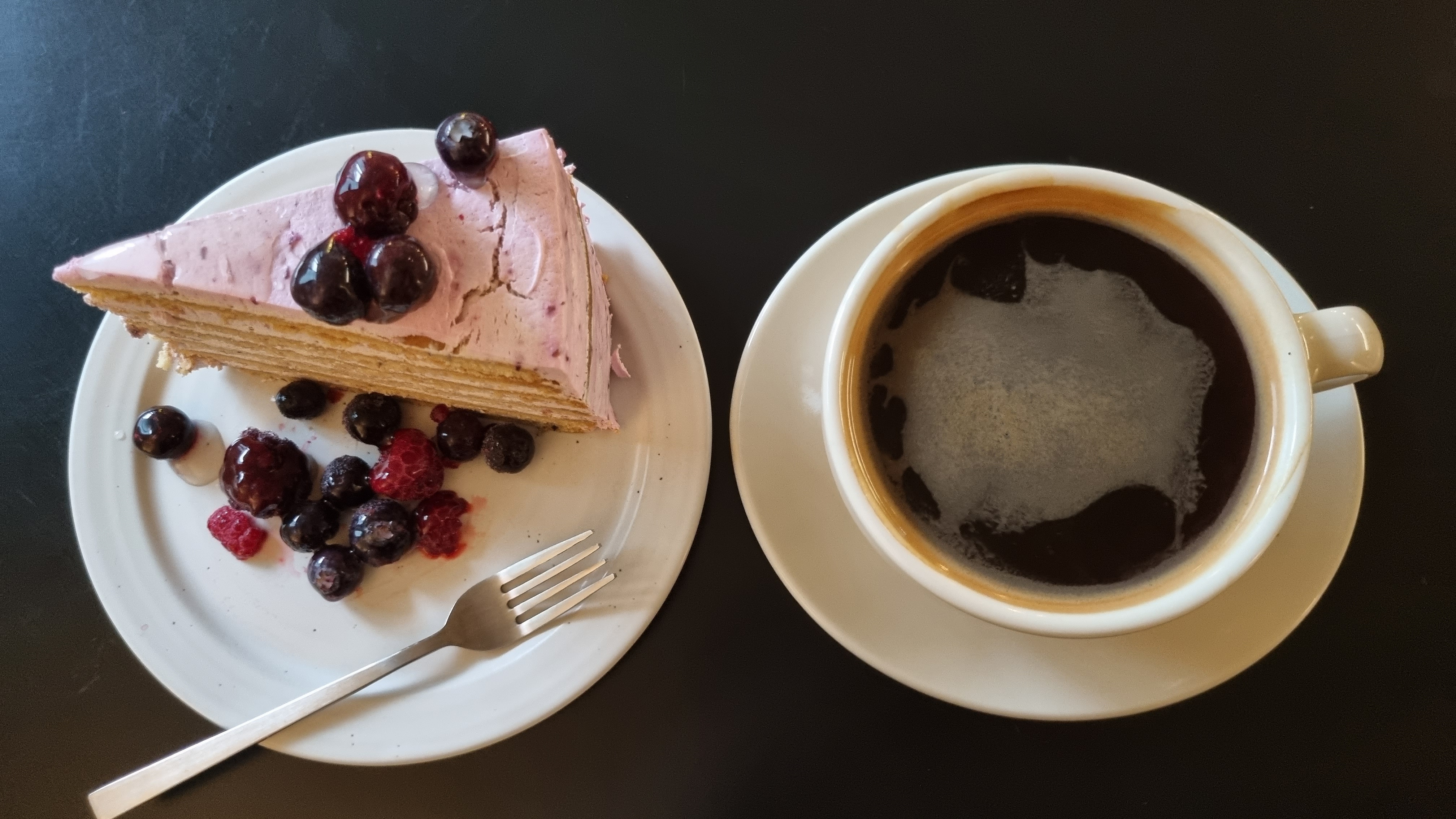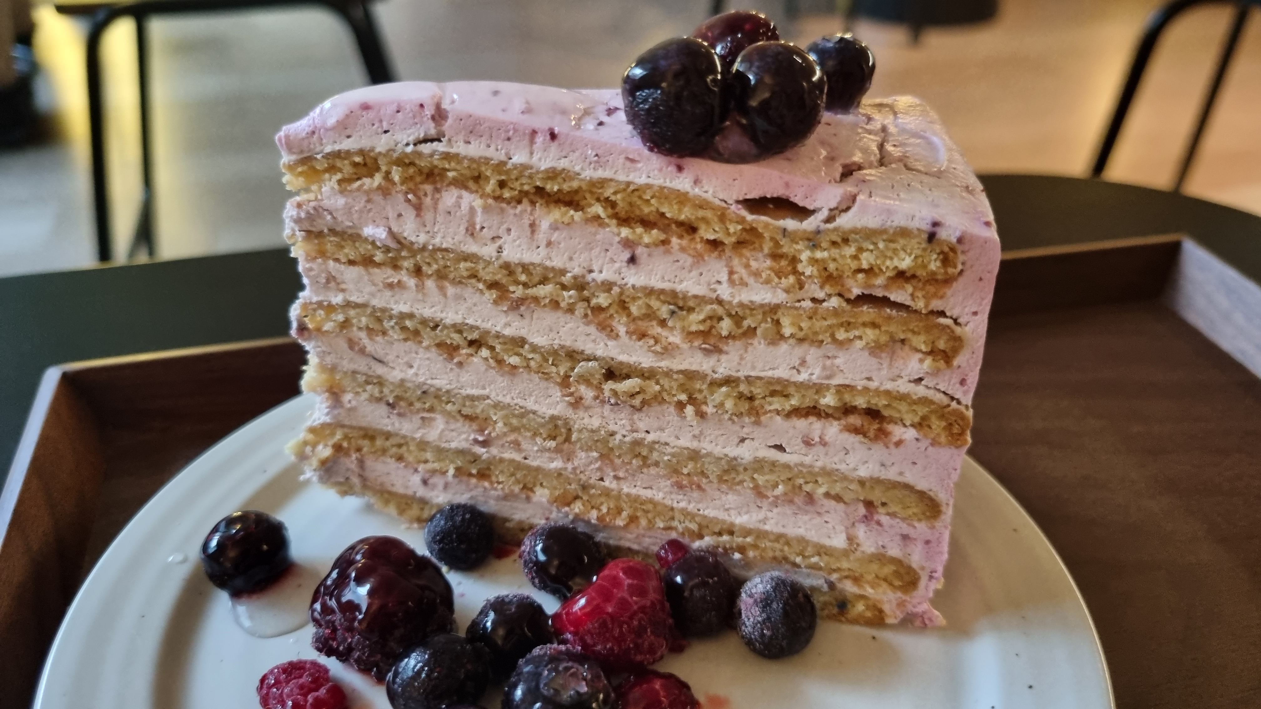케이크가 좀 굳어있고, 맛의 개성이 약하고, 베리류는 해동이 좀 덜된.. ㅠㅠ