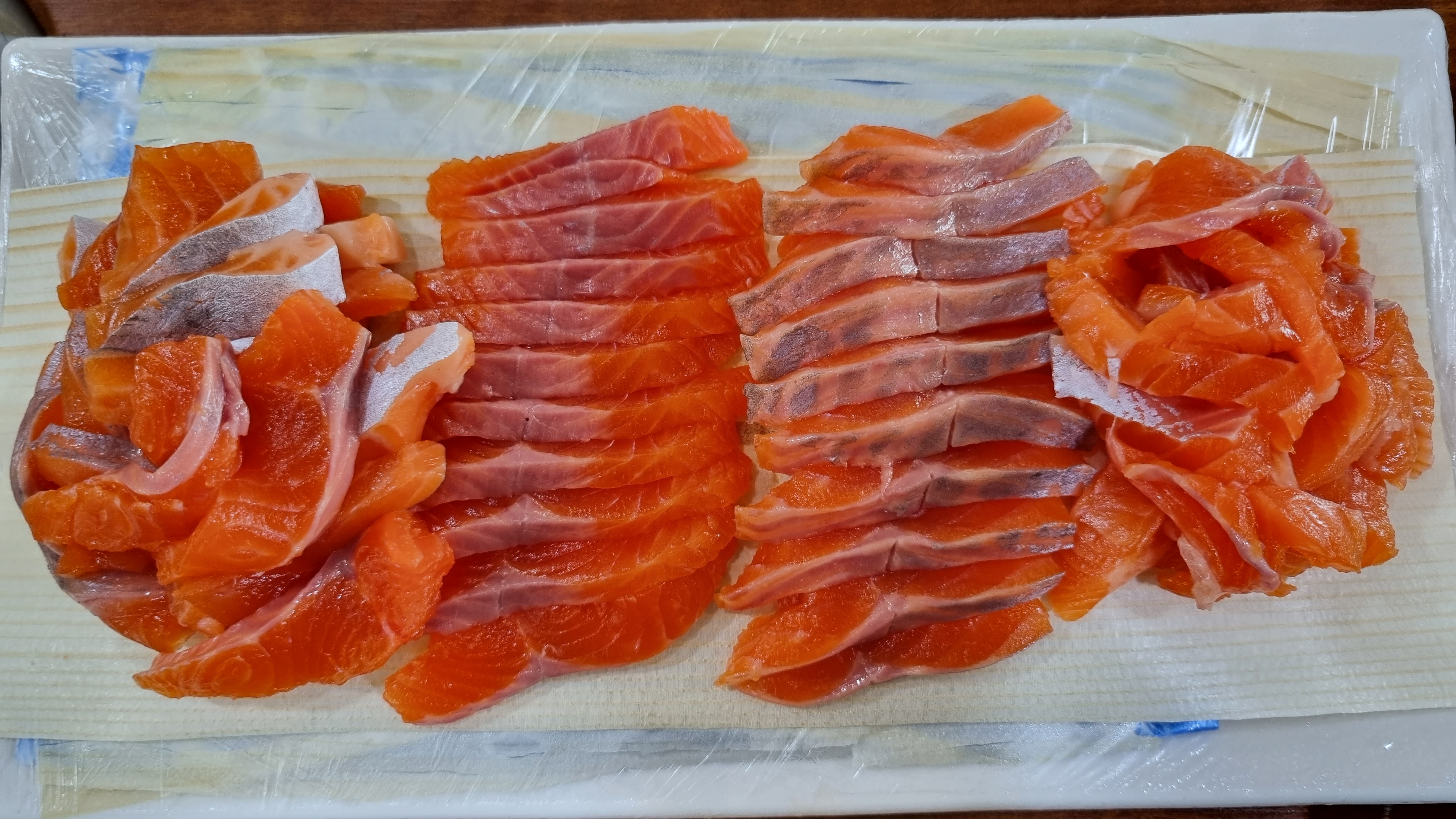 송어는 기계가 아닌 직접 칼로 썰어야 더 맛있다고 함.
