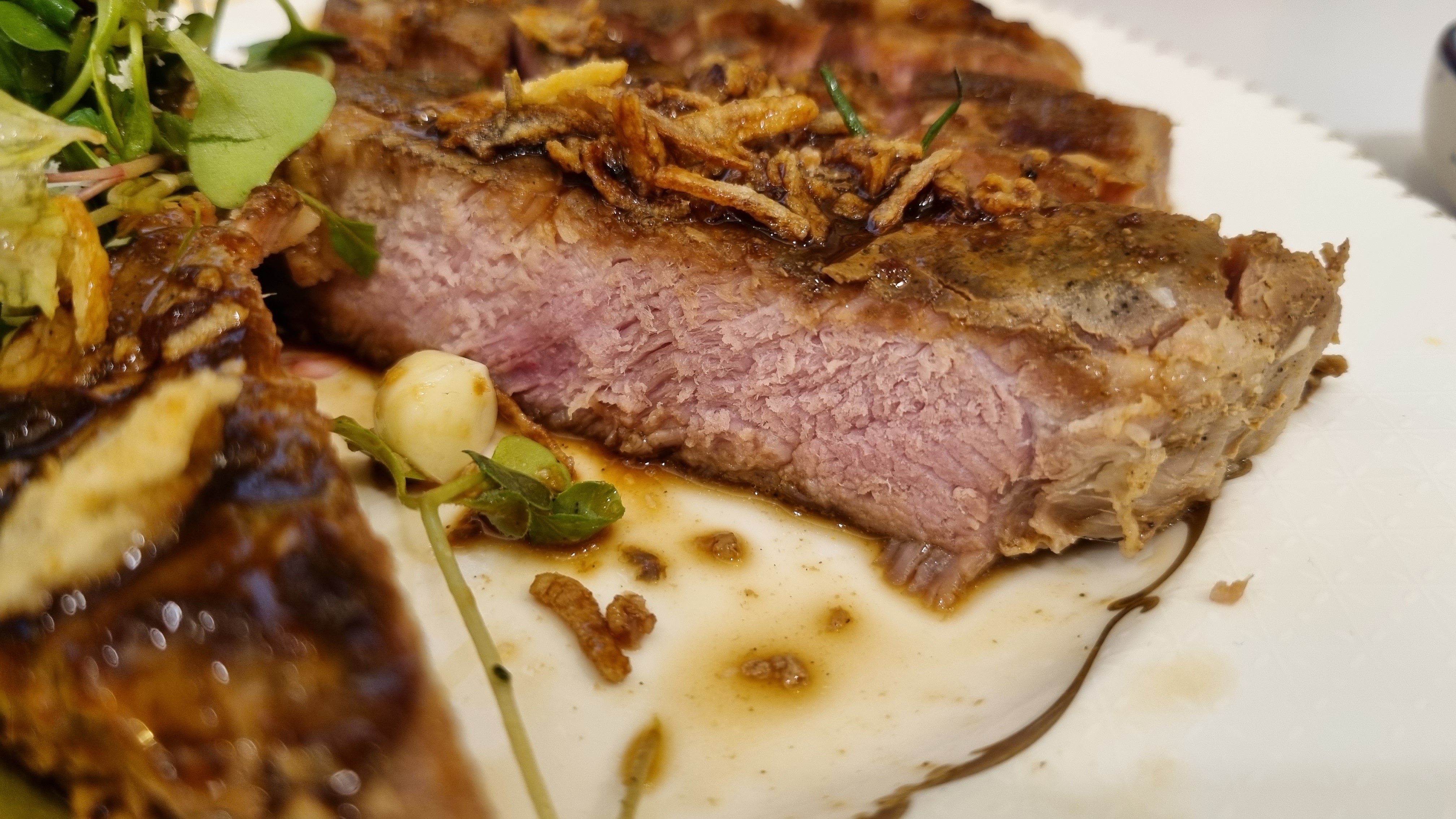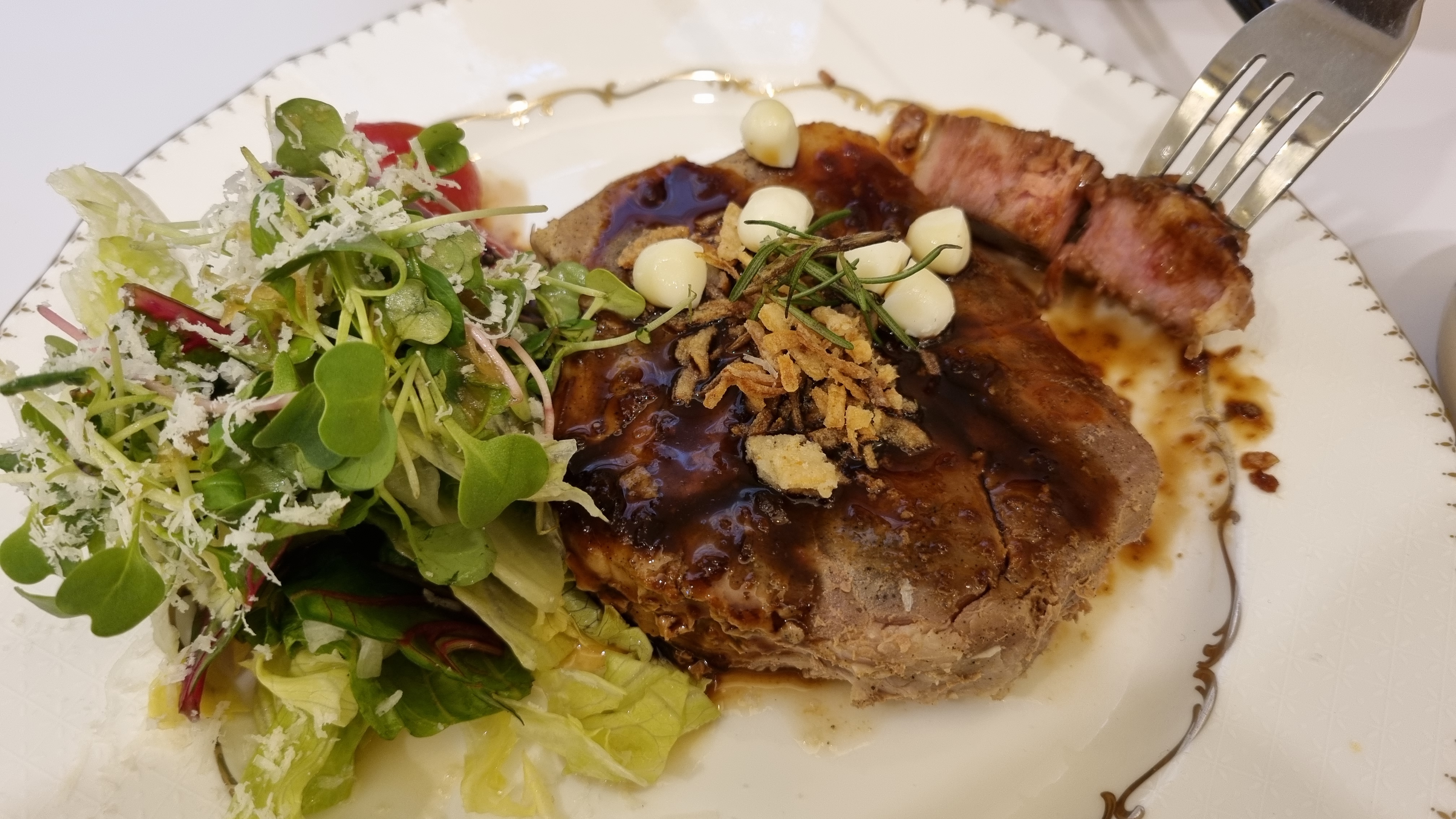 수비드 방식으로 조리해서 우리가 흔히 아는 스테이크 느낌보다는 떡갈비 느낌이 강하다.