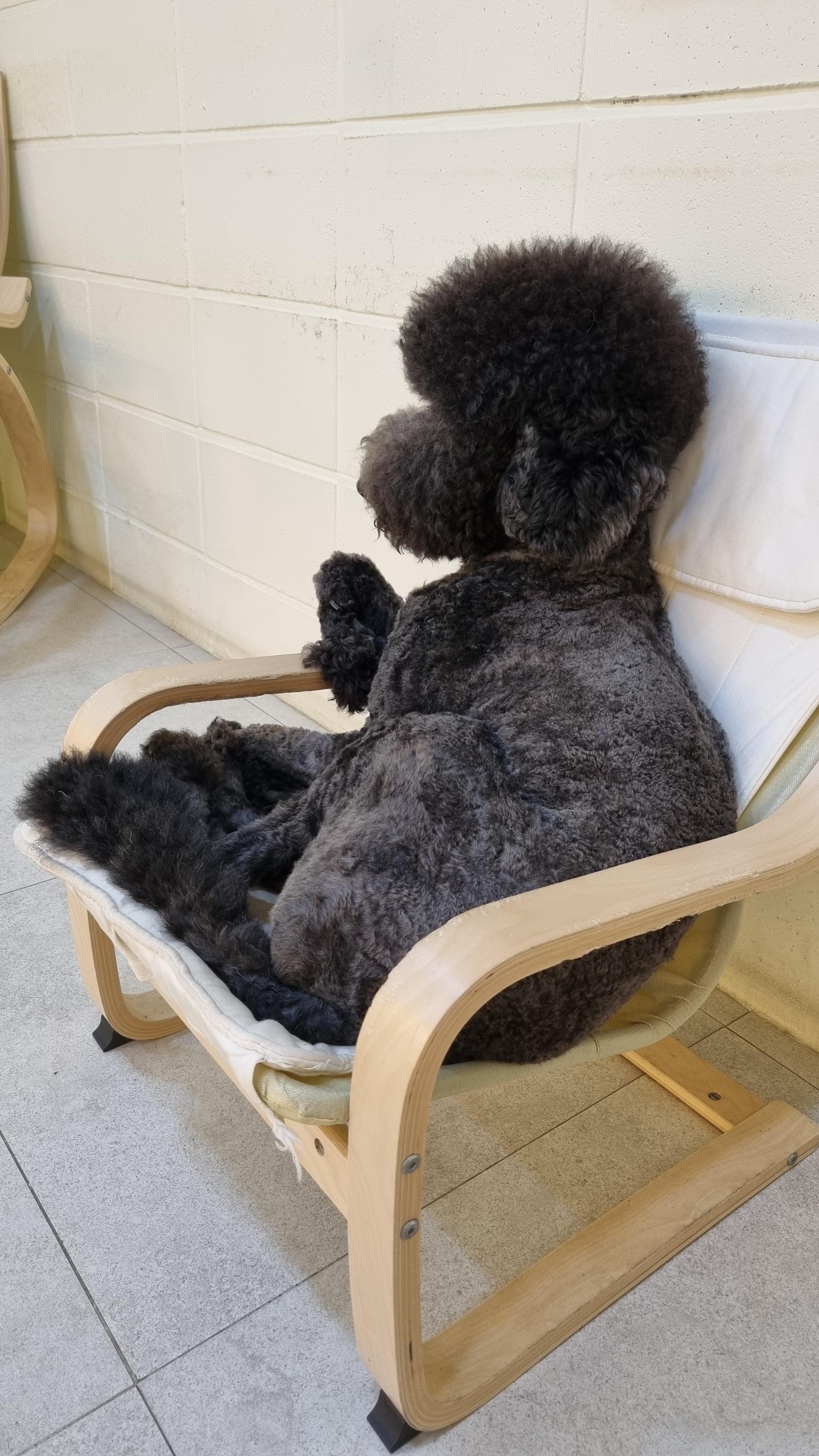 몸을 잘 접어서 의자 위에 앉은 재미있는 친구.