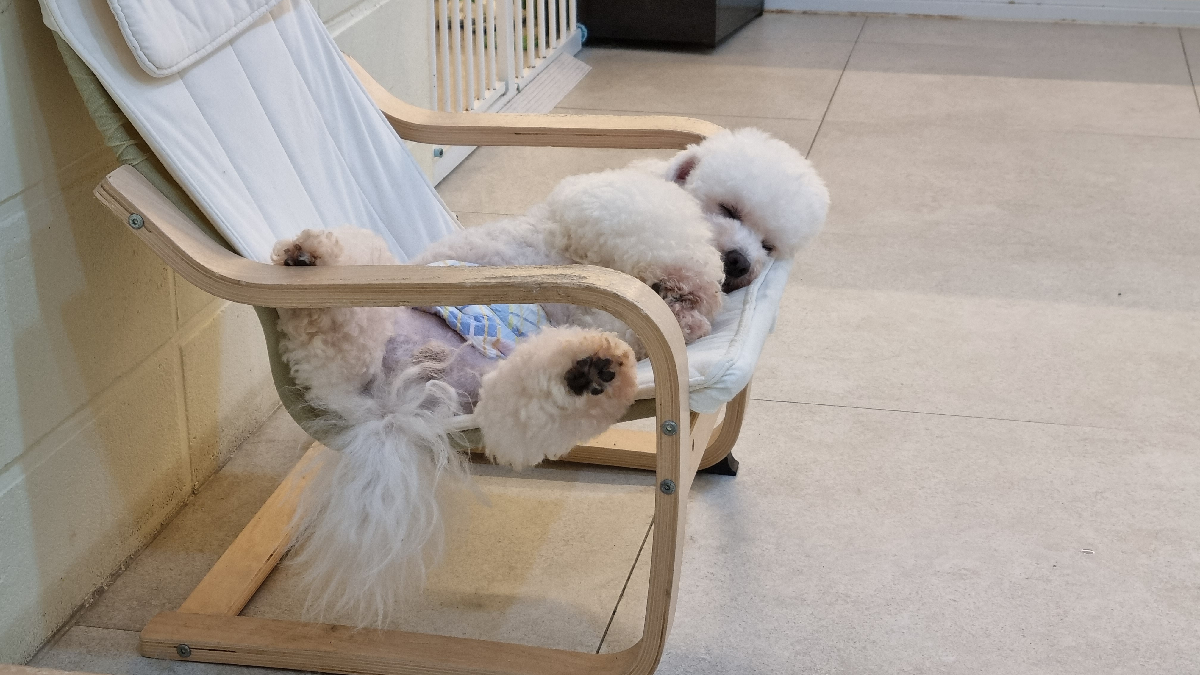 개팔자가 상팔자라는 말이 잘 적용되는 포즈로 잠을 자는 아이.
