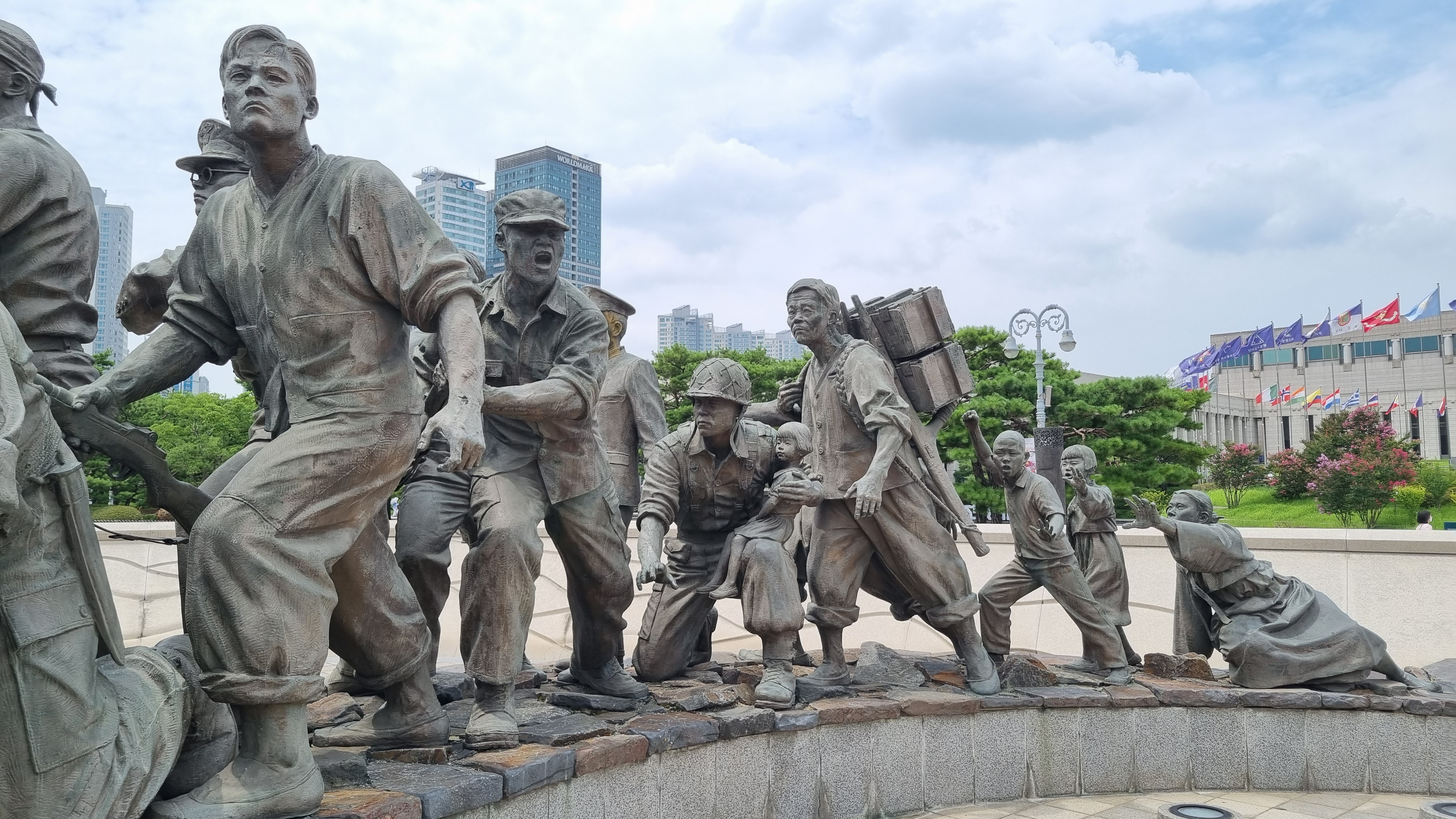 초입의 역동적인 멋진 군인 아저씨들 동상.