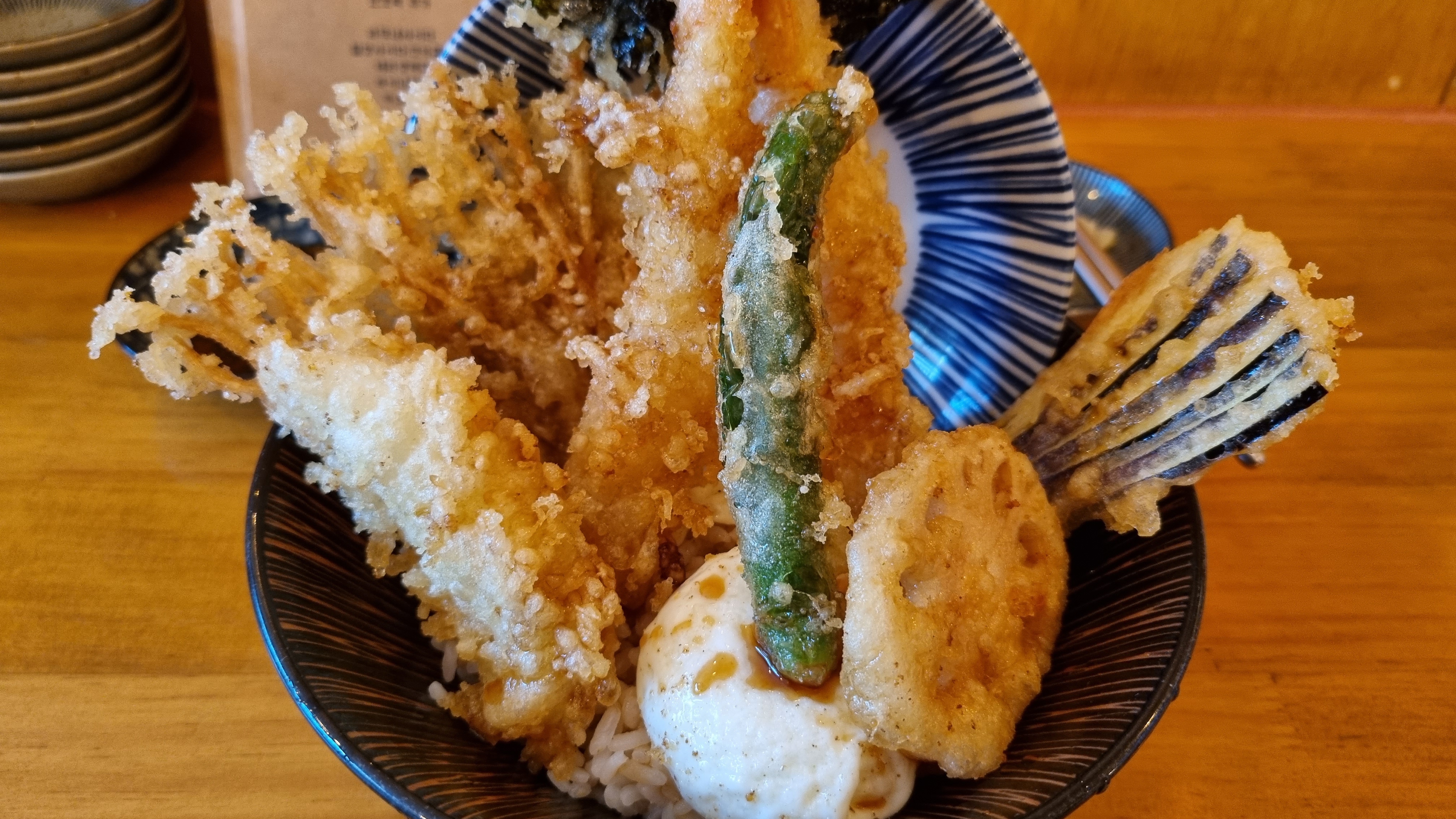 대전은 역시 서울 대비 저렴한 편이라, 9000원짜리 기본 텐동에 온센타마고도 들어있음.