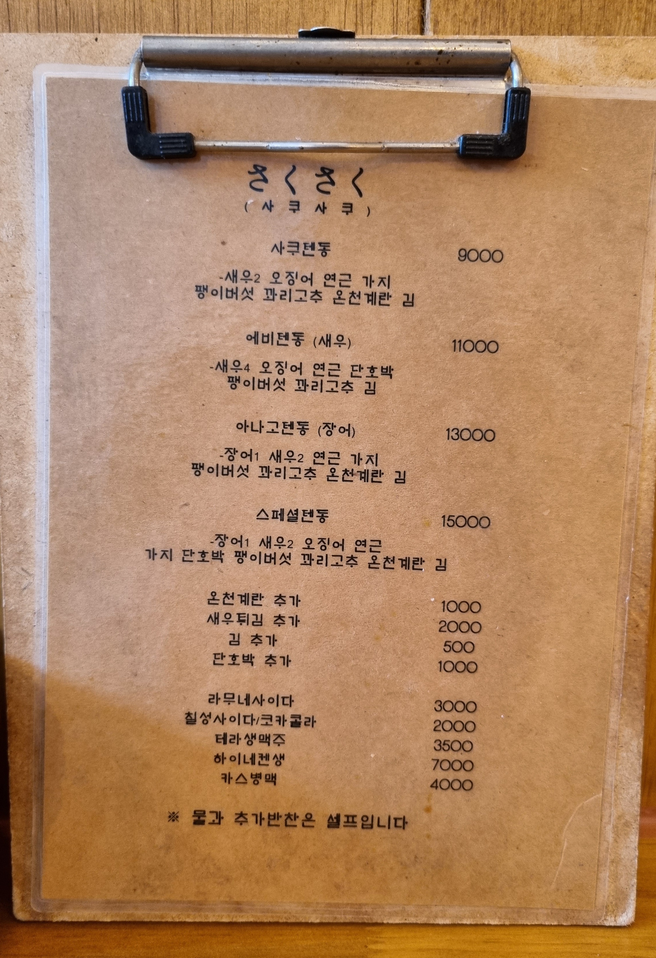 나는 기본인 "사쿠 텐동" 을 주문함.