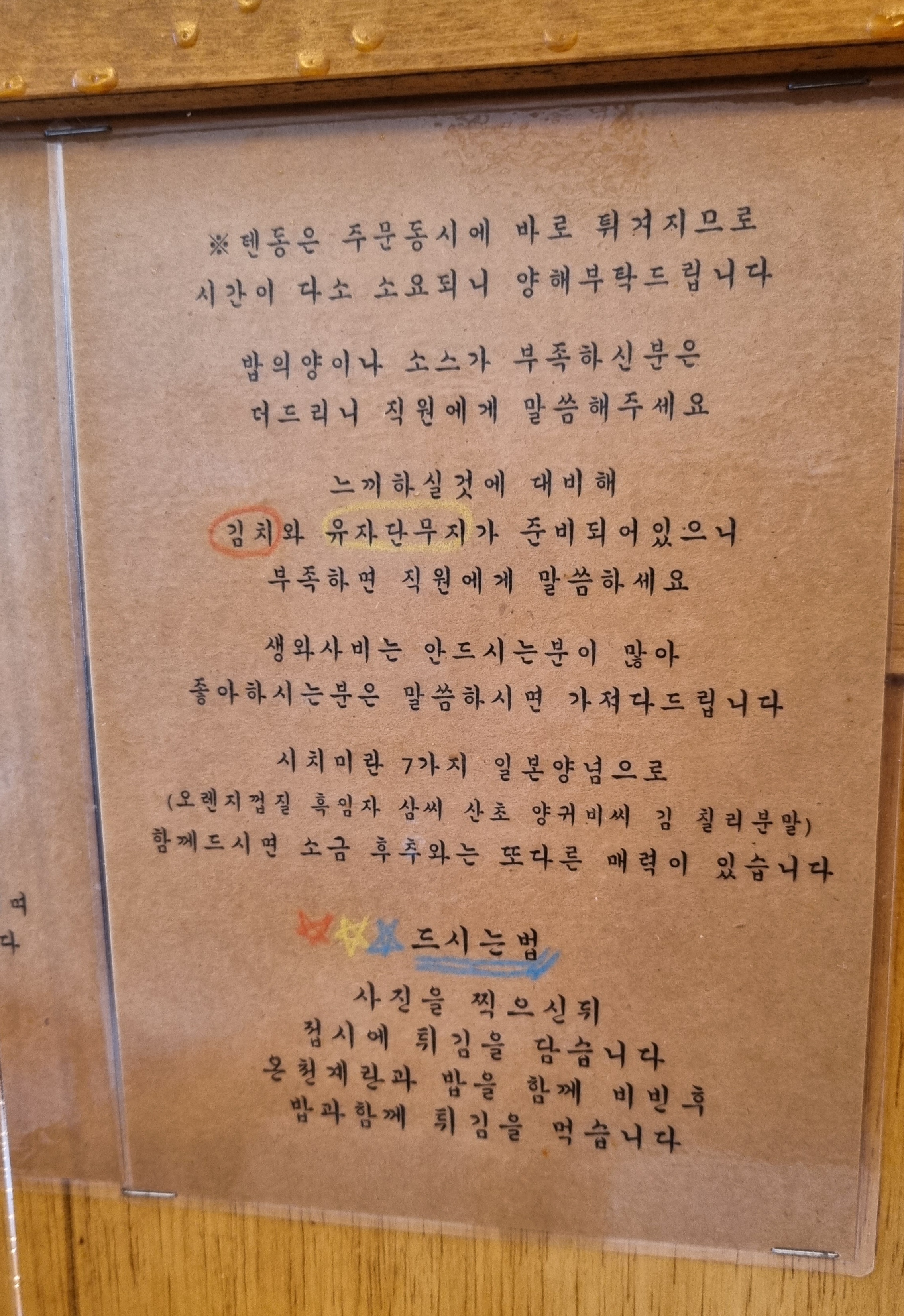시키는데로 튀김 덜어서 맛있게 먹음.