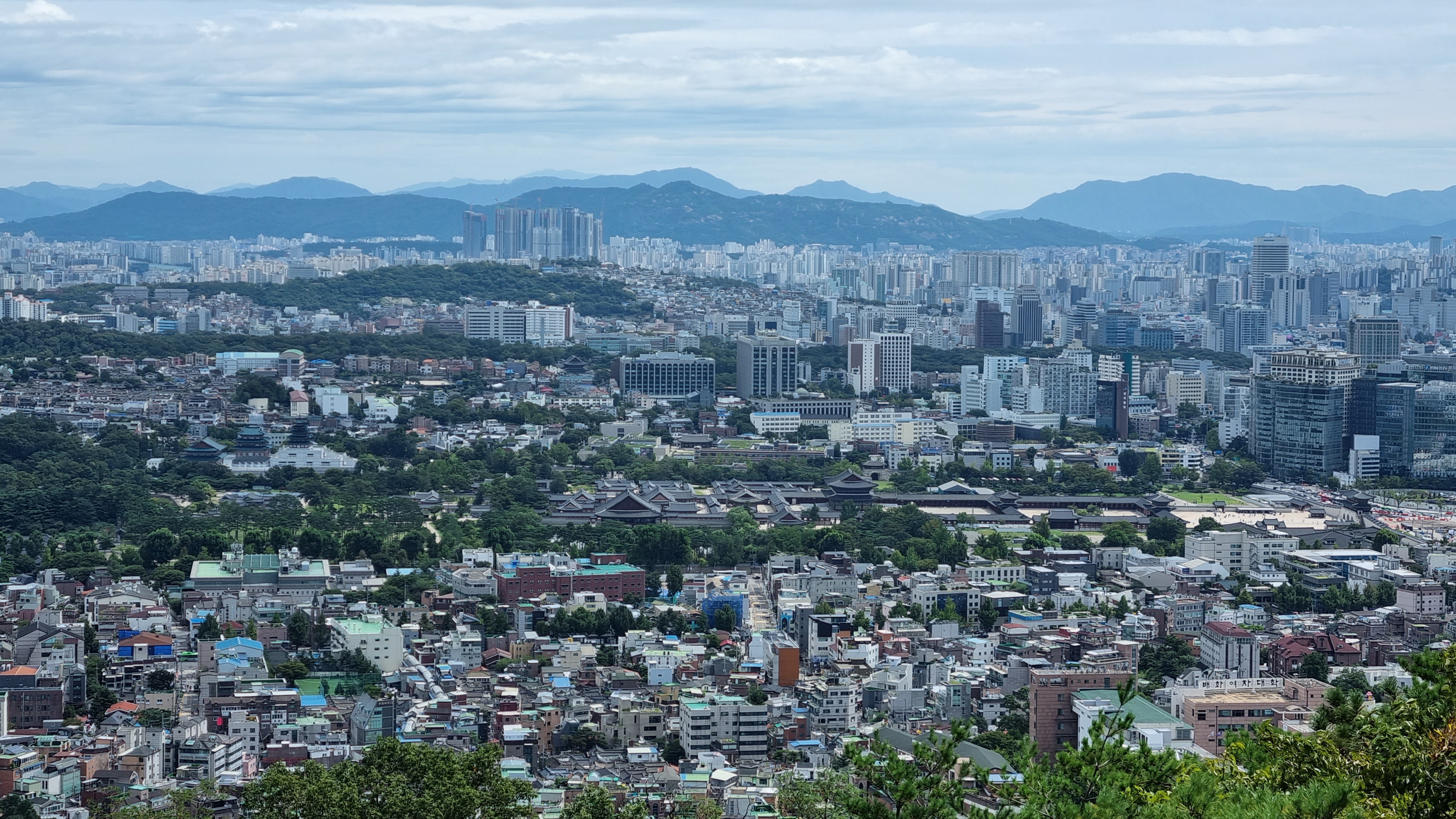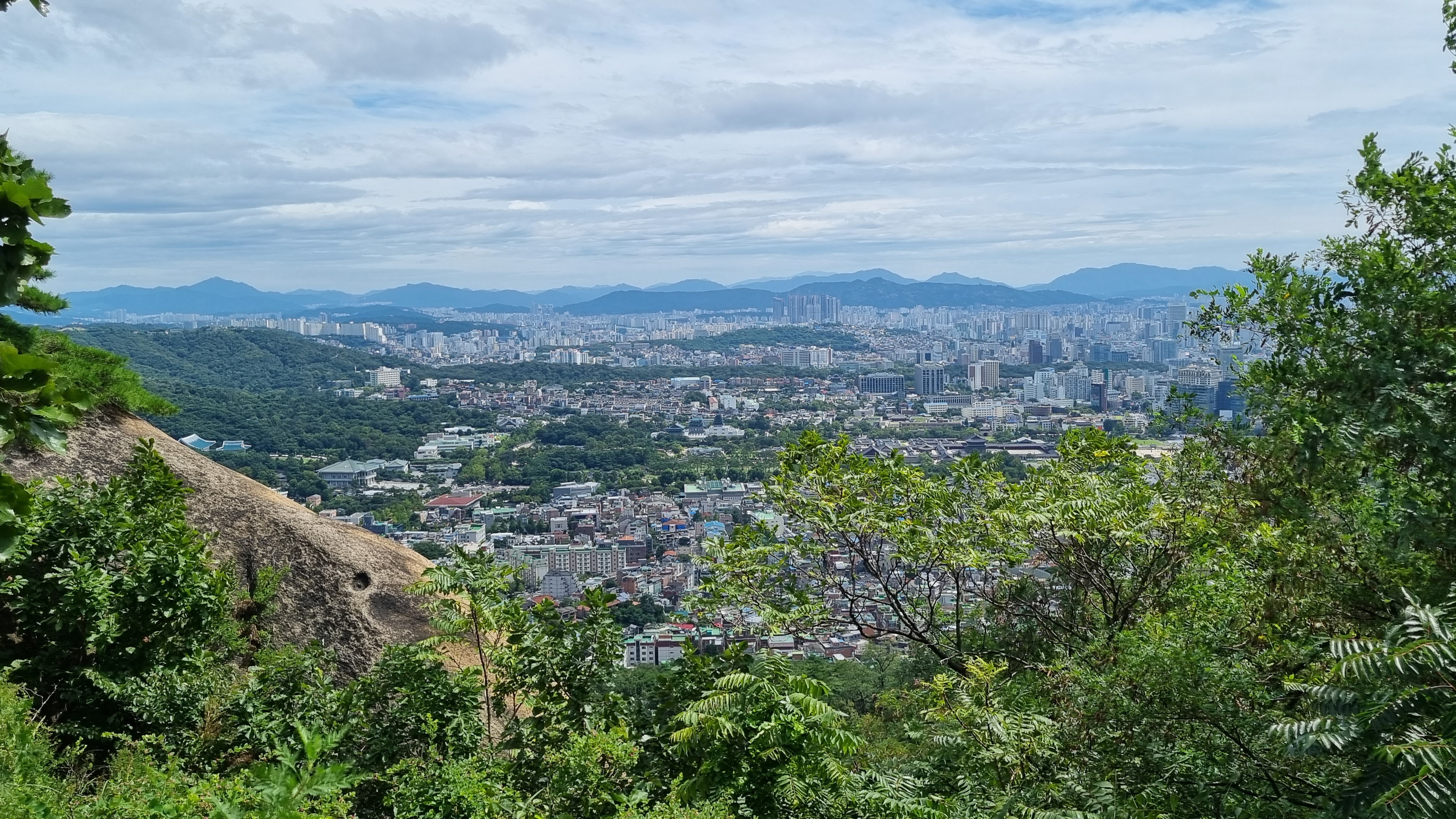 정상에 가까워지니 이제는 종로, 광화문, 남산, 서대문 쪽을 한눈에 볼 수 있음.