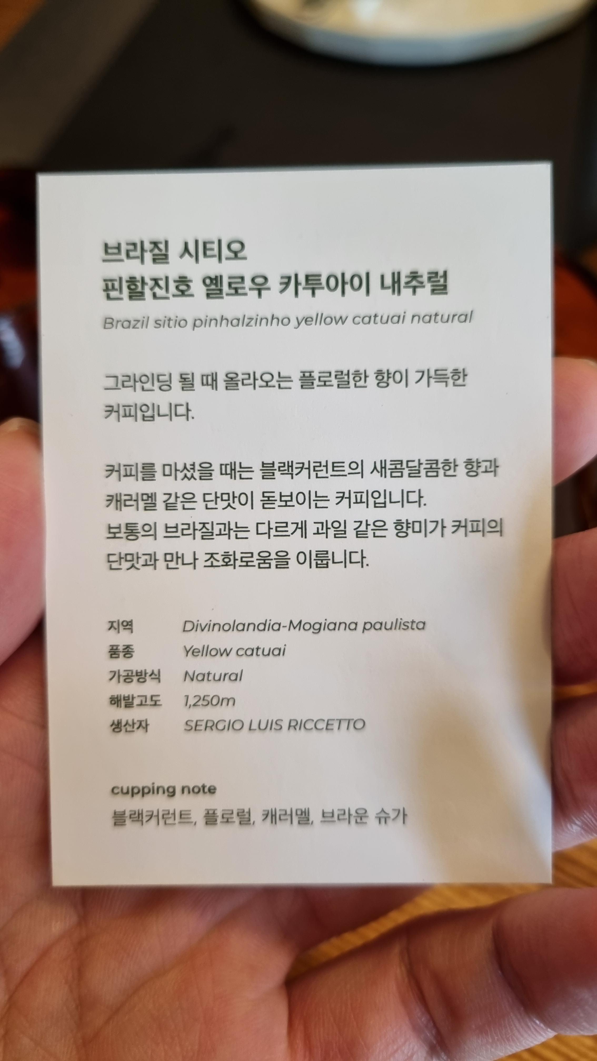 대신 선택한 것은 "브라질 시티오 핀할진호 옐로우 카투아이 내추럴"