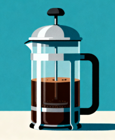 - 프렌치 프레스는 아래와 같이 생긴 용기에 커피 가루를 넣고, 뜨거운 물을 넣어 커피를 우려내는 방식입니다.