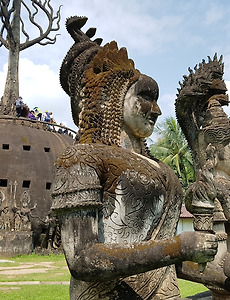 [라오스 비엔티안] 라오스에도 백화점이 있다오! 비엔티안 센터! [라오스 비엔티안] 라오스에도 백화점이 있다오! 비엔티안 센터! 지금까지 너무 시골스러운 자연환경 중심으로 라오스를 투어해서,라오스는 그런 곳만 있는 줄 알 텐데..천만에!!! 나도 조금 놀라긴 했는데 라오스에도 백화점이 있다. 이곳이 라오스라면 믿겠는가? ㅋ라오스의 백화점이라고 할 수 있는 "비엔티안 센터" 의 내부이다. 한국인들이 많이 오기 때문에 한국어 안내판도 있다. 요런 구조이다.매대의 배치 형태가 꽤나 흥미롭다.단조로운데 한편으로 귀여운 느낌도 든다. 한 때 영상보고 한참 웃었던 날아다니는 인형도 판다. 바로 요 동영상 ㅋㅋ 라오스의 잘 사는 아이들이겠지?여기도 키즈 파크가 있다. 그리고 푸드코트가 있는데,푸드 코트에는 영어나 한국어를 제대로 기술해 놓지 않아 오히려 이용이 조금 어려웠다. 극.. 2017. 4. 14. [라오스 비엔티안] 하이라이트 부다파크(씨앙쿠안) #5 [라오스 비엔티안] 하이라이트 부다파크(씨앙쿠안) #5 사람에 따라 지루했을 수도 있고,다양하고 매력있는 조각상들 구경에 시간 가는 줄 모르고 포스트를 읽고 본 사람도 있을 것이다. 여튼 이번 글이 부다파크의 마지막 글!!! 자 이제 곡예수준으로 올라왔던 곳을 통해 다시 밖으로 나가기 위해 건물을 내려간다. 엄마 사진을 찍어주기 위해 나는 어머니를 대기시키고 먼저 내려왔다. 지금 다시봐도 악마의 입은 비호감이지만서도 한편으로 꽤나 매력이 있다.곳곳에 피어난 이끼 혹은 덩쿨들이 매력을 배가시킨다. 용감한 어머니와 꼭대기의 괴이한 조형물. 신을 포함시킨 샷. 악마의 입으로부터 탈출하는 승려들.뭔가 의미심장하다. ㅋ 각도를 이렇게 잡으니 악마가 성나서 더 개걸스럽게 뭔가를 삼키려는 것만 같다. 빼꼼.. 나 여.. 2017. 4. 13. [라오스 비엔티안] 하이라이트 부다파크(씨앙쿠안) #4 [라오스 비엔티안] 하이라이트 부다파크(씨앙쿠안) #4 자 오늘도 이어서 부다 파크 투어이다.자 이제 호박 건물 안으로 들어간다. 호박 건물 안은 악마의 입을 통해서 들어간다.기분이 그렇게 썩 좋지만은 않지만, 재미는 있다. 내부는 이렇다.바깥쪽을 작은 창문들을 통해 볼 수 있다. 첫번째 창문..투박한 돌 프레임으로 꾸민 연잎을 그림을 보는 것만 같다. 또 다른 작은 창문.각 창문마다 다른 모습을 보여주니 재미있다. 여기는 1층, 지옥의 내부 모습이다.지옥이라서 몇몇 인물들이 해골을 들고 있나보다. 나머지 조각들로는 왜 지옥인지 잘 모르겠다. 호박 안쪽구조는 안쪽의 바깥쪽으로 복도가 있고,가운데는 저렇게 지옥, 현세, 그리고 천국을 묘사한 조각들이 있다. 각 창문들을 통한 유니크한 뷰를 즐기시는 어머니... 2017. 4. 12. [라오스 비엔티안] 하이라이트 부다파크(씨앙쿠안) #3 [라오스 비엔티안] 하이라이트 부다파크(씨앙쿠안) #3 자 부다 파크 3편이다.계속 조각 감상해보자. 초대형 와불. 얼마나 큰지는 오른쪽 아래 울 엄마의 크기와 비교해보라. ㅋㅋ 신난 어머니. 까르르 까르르 뱀 또아리를 틀고 있는 신의 뒤태. ㅋ 코끼리를 타고 가는 걸 보니 니가 바로 인드라구나~!! 응?? 악어를 타는 신하고, 자라를 타는 신도 있었나?뭘 저렇게 타고들 다니는거야 ㅋㅋㅋ 코끼리를 타고 가는 인드라 신.근데 코끼리 머리가 3개네? ㅋ 피리부는 사나이?크리슈나를 나타낸건가?? 그렇다기에는 너무 투박한데?크리슈나는 꽃미남으로 유명한데 말이쥐. 이분은 왠지 중국에서 넘어온듯한.. 복스러움을 가지고 있다. 또 다시 나 팔 많아요~내 발 단계단계 조립한거에요~ ㅋㅋ누군지 모르겠다. 거대한 쉬바신인.. 2017. 4. 11. [라오스 비엔티안] 하이라이트 부다파크(씨앙쿠안) #2 [라오스 비엔티안] 하이라이트 부다파크(씨앙쿠안) #2 비엔티안 하이라이트 부다 파크(씨앙쿠안) 2편이다.오늘도 열심히 조각 감상이다. 몸에 문신있는 부처님도 있고,변색으로 입 주변과 팔이 썩은(?)듯한 느낌의 부처님의 좌상도 있다.뒤쪽으로는 와불도 보이고,태국쪽 불교 사천왕 조각도 보인다. 볼거리 천지다. 요 녀석은 Matya(마쓰야)로 비슈누의 아바타 중 하나이다.비슈누의 10개의 아바타 중 첫번째 아바타로, 대홍수 이후의 유일한 인간 Manu(마누) 라는 사람을 구한다. 이 어마무시하게 거대한 석상은 태국의 수호신 쑤크립(Sukhrip) 이다. 무슨 스토리를 가지고 있는지 잘 모르겠지만 여인의 시체를 안고 있다.궁금하다.. 무슨 이야기를 가지고 있을까?이 거대 조각상을 이해하기 위해서는 태국 건국 .. 2017. 4. 10. [라오스 비엔티안] 하이라이트 부다파크(씨앙쿠안) #1 [라오스 비엔티안] 하이라이트 부다파크 (싸앙쿠안) #1 방비엥에서는 튜빙, 탐람의 동굴튜빙, 그리고 블루라군이라는 3가지 하이라이트. 루앙프라방에서는 꽝시폭포라는 하이라이트가 있었다면,비엔티안은 "부다파크" 라는 하이라이트가 있다. 부다파크는 비엔티안 시내에서 자동차로 약 40분.버스를 타면 약 1시간 ~ 1시간 15분정도 걸리는 약간 떨어진 곳에 위치해 있다. 우리는 시내버스를 타고 간다.버스비는 편도 1인당 6,000킵 ( 한화 약 840원 ) 이다. 이 버스는 태국의 국경도시 농카이(Nongkhai) 를 연결하는 우정의 다리(Thai-Lao Friendship Bridge